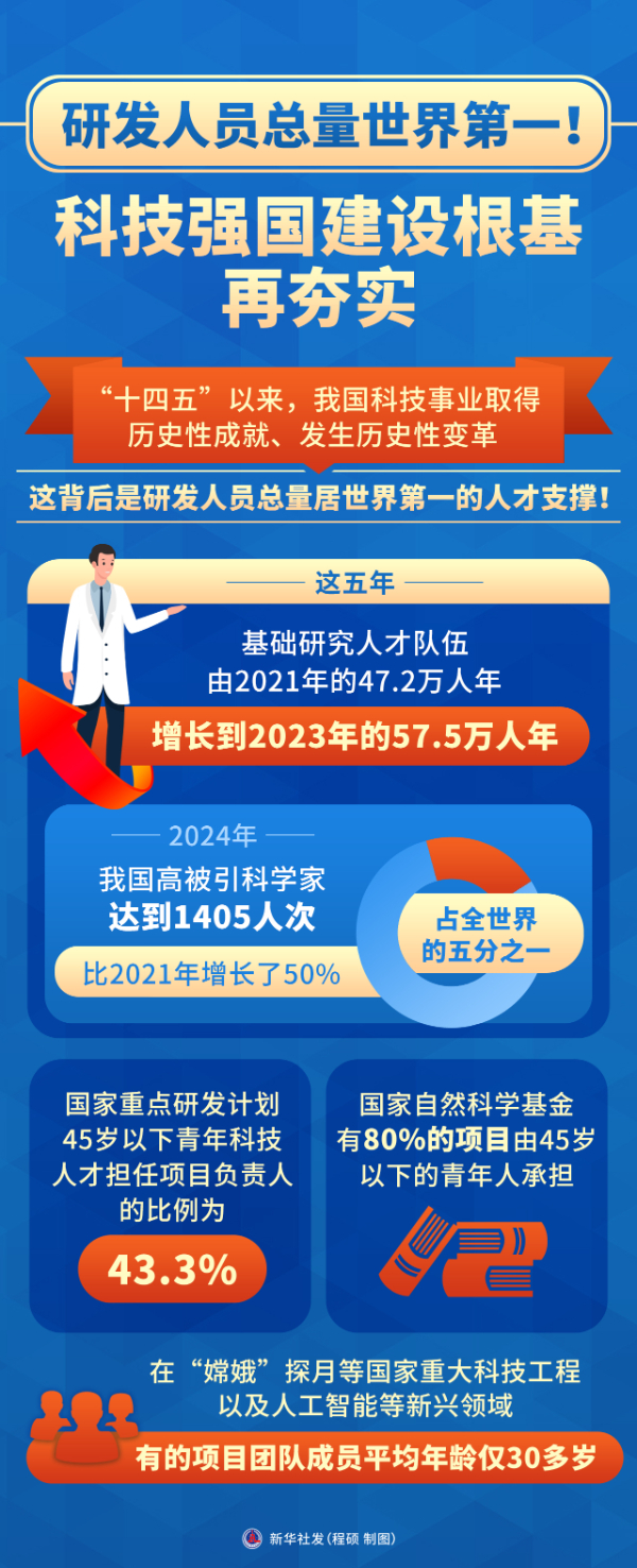 “十四五”以来,我国科技事业取得历史性成就、发生历史性变革,这背后是研发人员总量居世界第一的人才支撑!