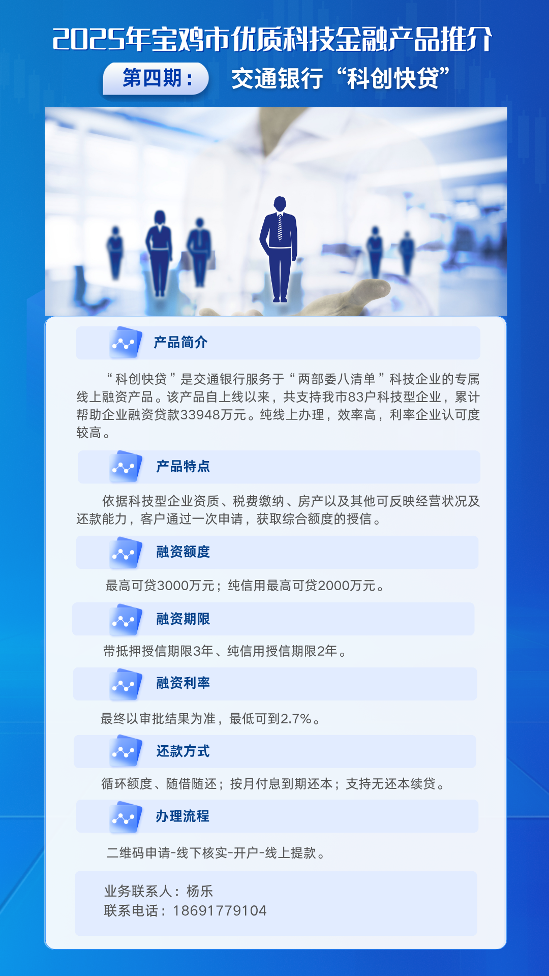 为进一步推动科技与金融深度融合,健全金融支持科技创新体系,深化政银企协同机制,精准对接科技型企业融资需求,宝鸡市科技局特别策划推出优质科技金融产品专题系列。本系列精选金融机构特色产品,旨在为各类科技创新主体提供金融信息参考,促进金融资源与市场主体需求高效匹配。后续将陆续推送系列产品介绍,详细列明各产品特点及申请要求,敬请持续关注。