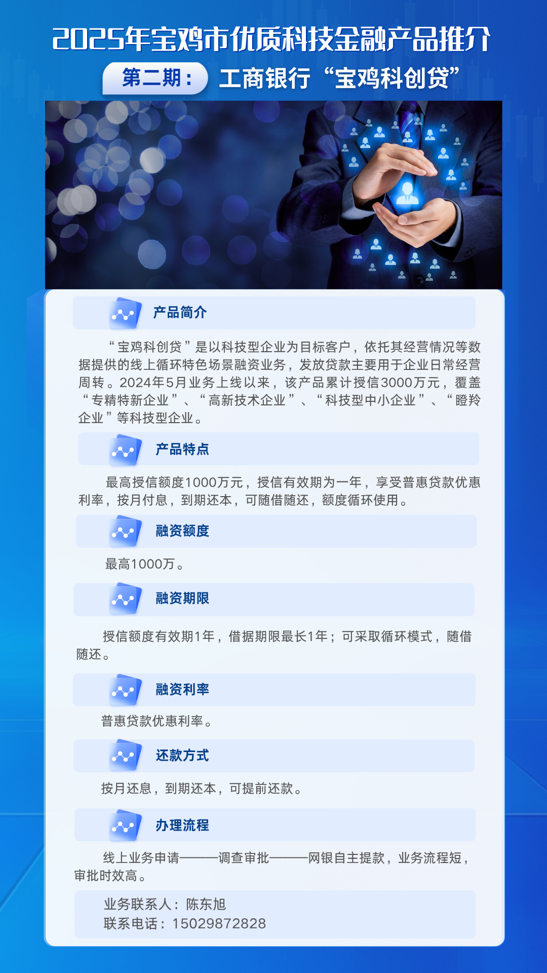 为进一步推动科技与金融深度融合,健全金融支持科技创新体系,深化政银企协同机制,精准对接科技型企业融资需求,宝鸡市科技局特别策划推出优质科技金融产品专题系列。本系列精选金融机构特色产品,旨在为各类科技创新主体提供金融信息参考,促进金融资源与市场主体需求高效匹配。后续将陆续推送系列产品介绍,详细列明各产品特点及申请要求,敬请持续关注。