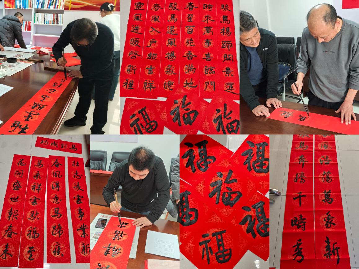 活动现场,红幅铺展,翰墨生香。应邀前来的书法名家神情专注,挥毫落笔如云烟。笔锋流转间,一个个气韵生动的“福”字、一副副对仗工整的春联翩然而成。内容既有“科技赋能开新境,创新驱动展宏图”这般呼应时代使命、彰显行业特色的铿锵语句,也不乏“春临大地百花艳,节至人间万象新”等蕴含吉祥寓意、传递美好向往的经典联语。干部职工们或驻足品评,或悉心挑选,笑语欢声与淡淡墨香交织萦绕,火红的春联映衬着盈盈笑脸,交织出一幅温情满满、其乐融融的迎春画卷。