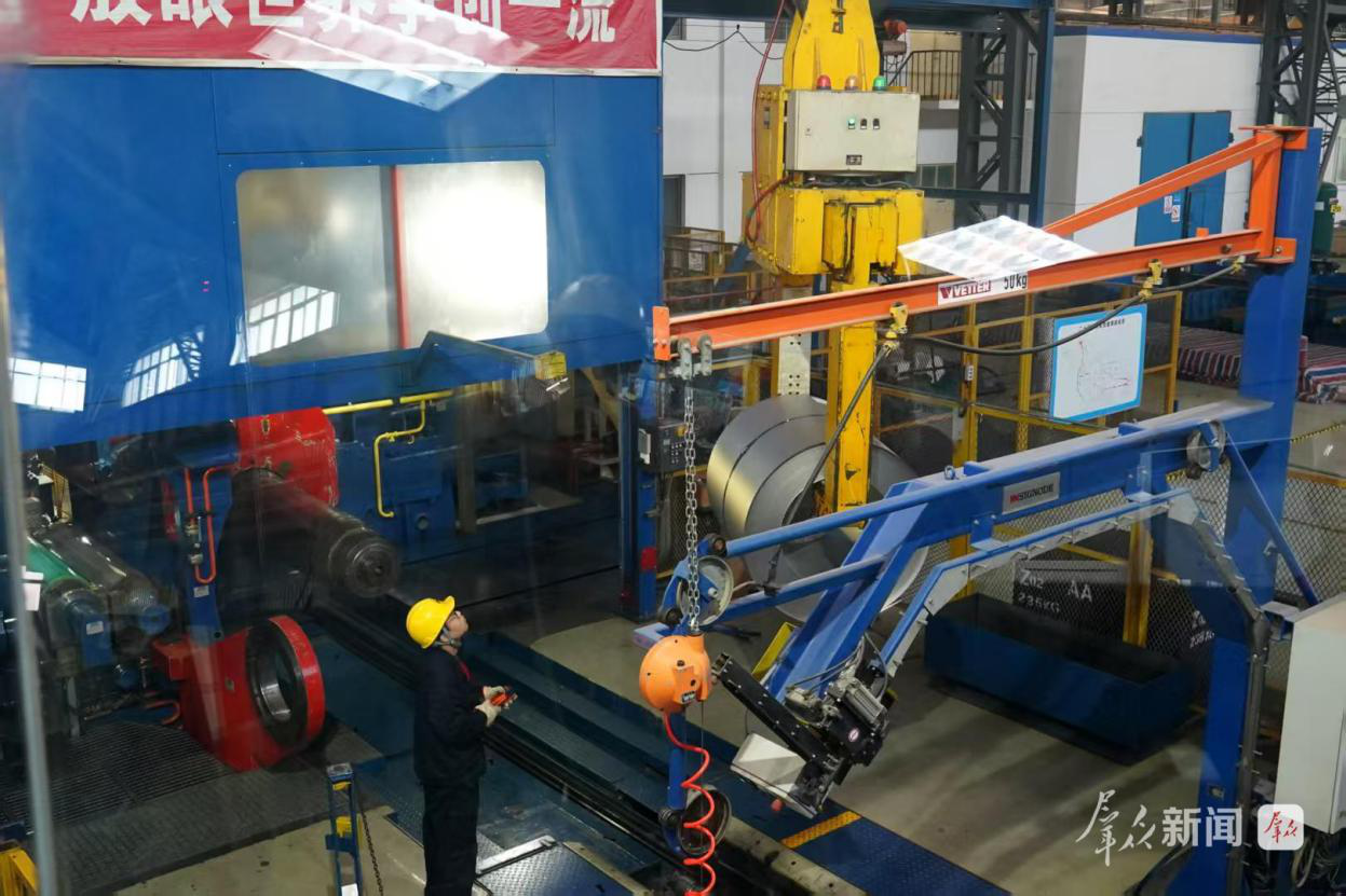 在宝钛集团有限公司生产车间,工作人员在操作设备。